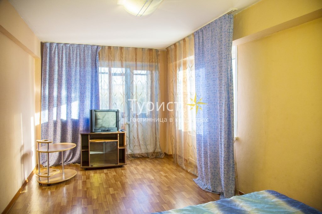 Однокомнатные апартаменты класса комфорт оснащены функциональной мебелью и техникой для отдыха, хранения вещей и досуга – кровать, шкаф, телевизор и Wi-Fi.